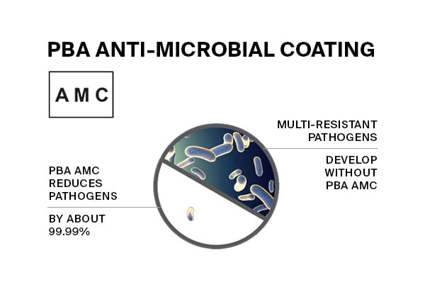 Antimikrobisilla pinnoilla varustettujen pba-tuotteiden käyttö on yhä tärkeämpi keino luoda puhtaampia ja hygieenisempiä ympäristöjä, joissa mikrobien lisääntymis- ja leviämismahdollisuudet vähenevät. Pba AMC perustuu hopeaioneihin perustuvaan teknologiaan, joka estää mikrobien ja bakteerien lisääntymistä.