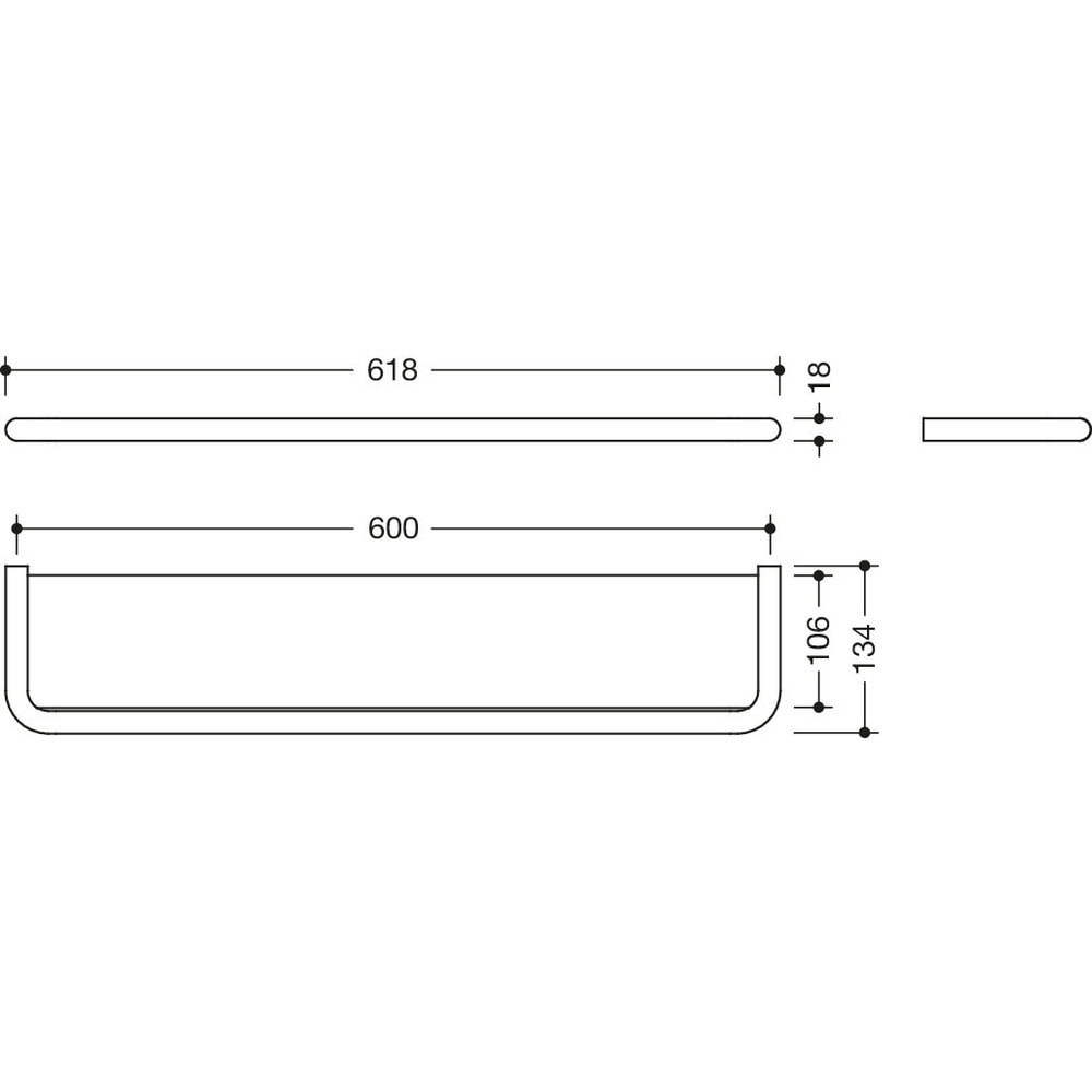 Hylly, Range 480 – hylly, jossa on ympärikiertävä reunus ja kiinteä lasitaso. Valmistettu korkealaatuisesta ruostumattomasta teräsputkesta Ø 18 mm, PVD-pinnoitettu. Lasihylly (4 mm) hiekkapuhallettu mattapintaiseksi alapuolelta. Leveys 618 mm, syvyys 134 mm, kiinnitysväli 600 mm. Seinäasennus, piilokiinnitys. Ei sovellu suihkutilaan. Mukana ruostumattomat HEWI-kiinnitystarvikkeet.