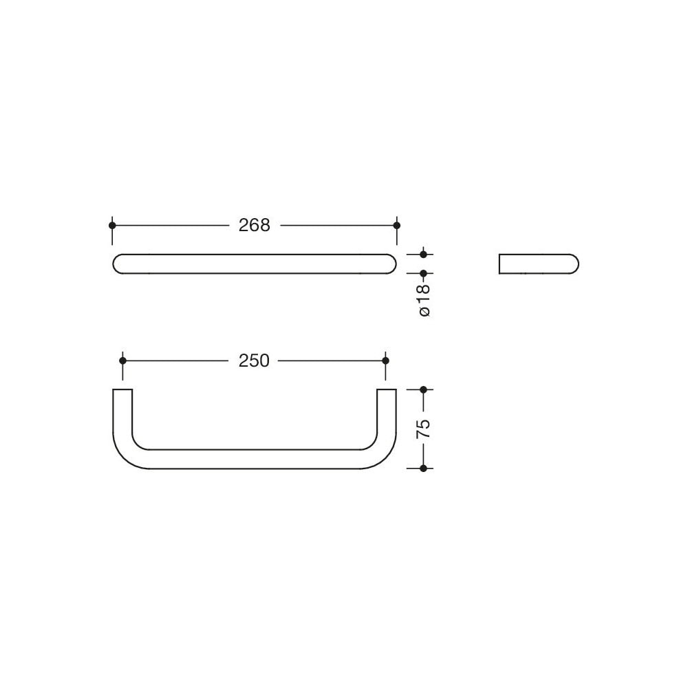 Pyyhetanko, Range 480 – sylinterimäinen tanko kaarevalla seinäkiinnityksellä. Keskiväli 250 mm, syvyys 75 mm, Ø 18 mm. Valmistettu PVD-pinnoitetusta rst:stä. Seinäasennus, piilokiinnitys. Mukana ruostumattomat HEWI-kiinnitystarvikkeet.