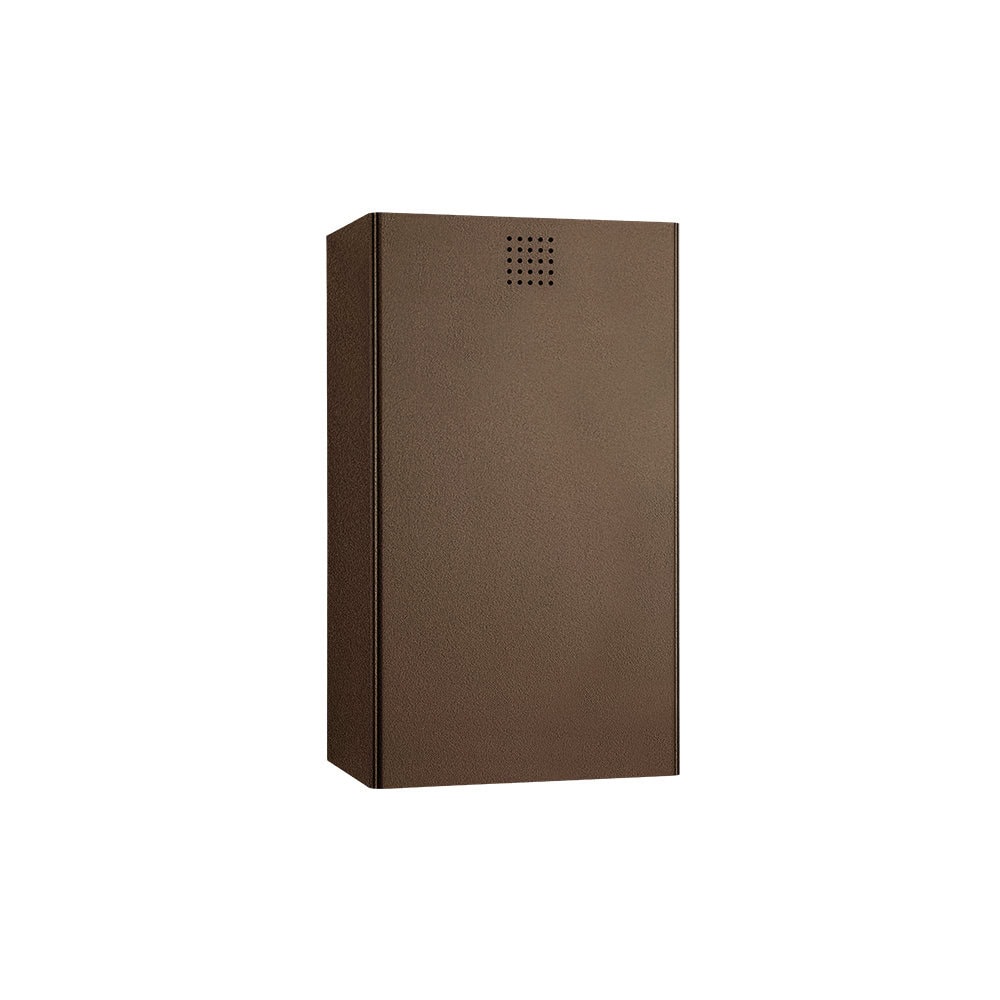 Seinälle asennettava roska-astia. Ruostumatonta terästä, väri Architectural Bronze, pulverimaalattu. Kannen vahvuus 1,5 mm. Rei’itetty täyttätason ilmaisin 4 mm:n porauksilla. Integroitu pussinpidike. Tilavuus 31 litraa. Saatavilla myäs lattiamallina. Sisältää ruostumattomasta teräksestä valmistetut ruuvit ja tulpat.