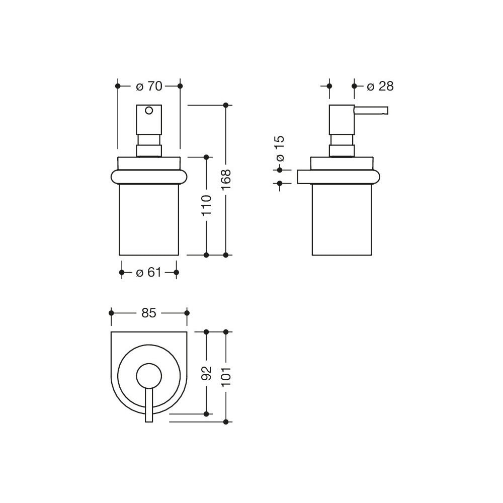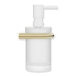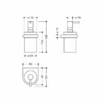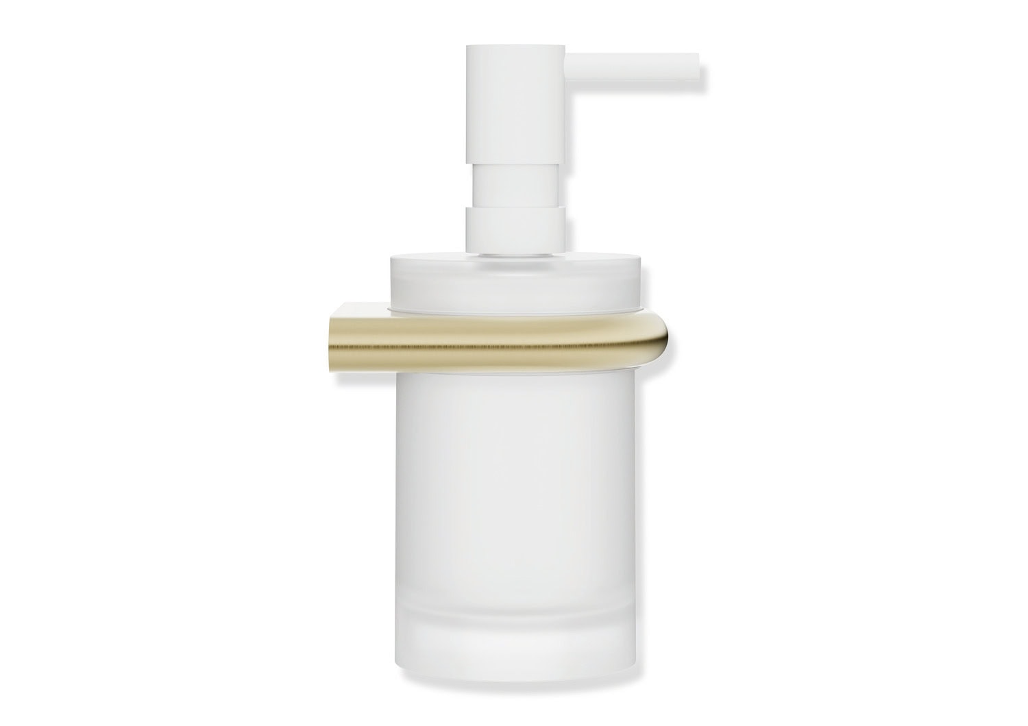 Saippua- tai desinfiointiautomaatti pidikkeellä, Range 480 – rengasmainen seinäkiinnitteinen pidike. PVD-pinnoitettu rst-runko, jossa muovinen suojarengas lasiosan suojaamiseksi. Leveys 85 mm, korkeus 168 mm, syvyys 92 mm. Annostelija satinoitua kristallilasia, kapasiteetti n. 200 ml. Sopii nestesaippualle, desinfiointiaineille ja geeleille. Pumpun pää rst, valkoinen mattapulveripinnoitettu. Seinäasennus, piilokiinnitys. Mukana ruostumattomat HEWI-kiinnitystarvikkeet.