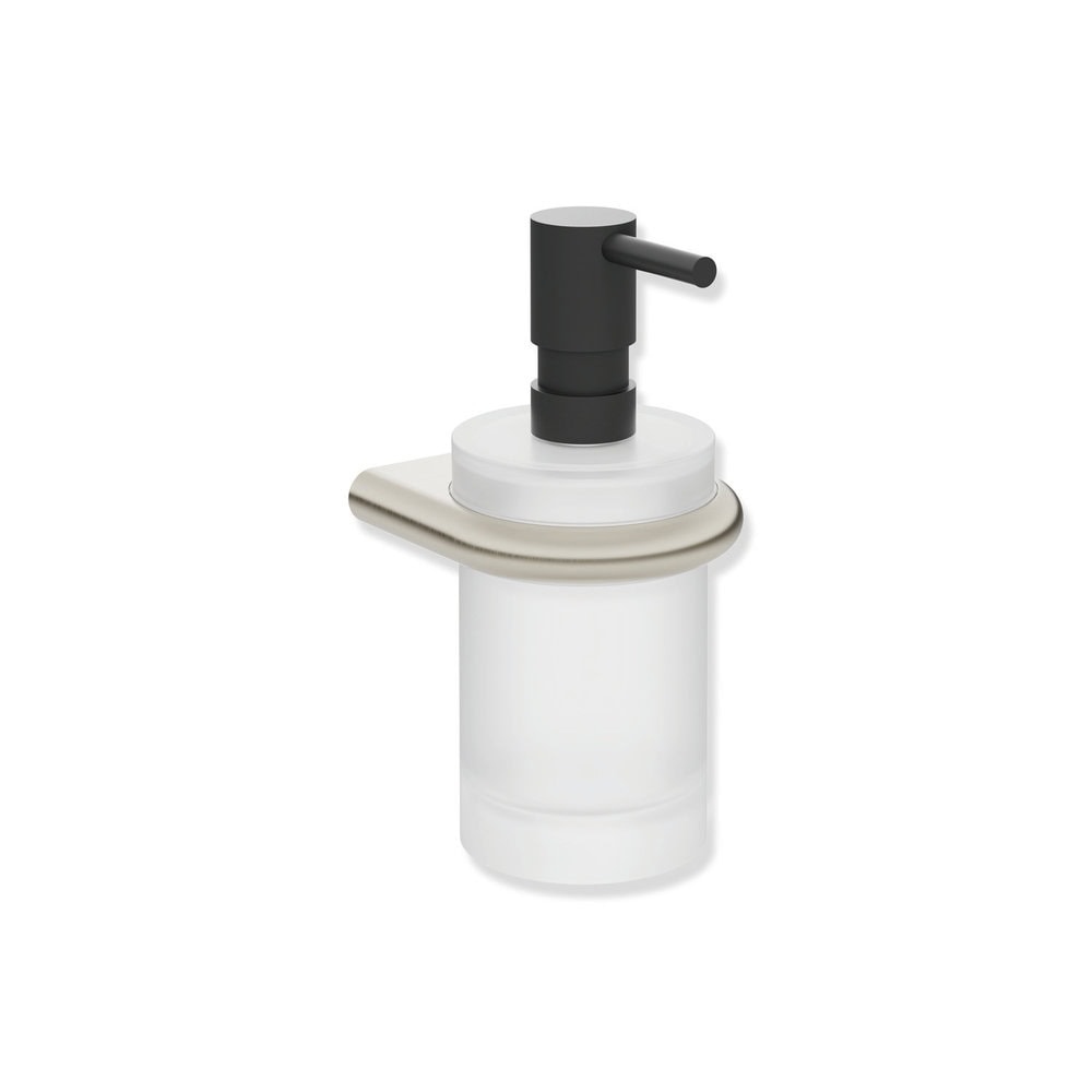 Saippua- tai desinfiointiautomaatti pidikkeellä, Range 480 – rengasmainen seinäkiinnitteinen pidike. PVD-pinnoitettu rst-runko, jossa muovinen suojarengas lasiosan suojaamiseksi. Leveys 85 mm, korkeus 168 mm, syvyys 92 mm. Annostelija satinoitua kristallilasia, kapasiteetti n. 200 ml. Sopii nestesaippualle, desinfiointiaineille ja geeleille. Pumpun pää rst, musta mattapulveripinnoitettu. Seinäasennus, piilokiinnitys. Mukana ruostumattomat HEWI-kiinnitystarvikkeet.