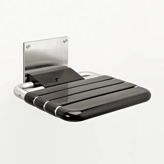 pba kääntyvä suihkuistuin 4CS.447.000B.44, haponkestävä rst AISI 316L, hiottu rst/musta polyamidi – Tamsale Oy